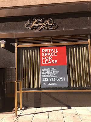 After taking these few photographs to give you all an idea of the scene, I walked home, passing by yet another Trump property (in name anyway...I don't know if he actually still owns this building) where opportunity knocks. The building is at the corner of Sixth Avenue and Central Park South. The former tenant was Whiskey Bar.